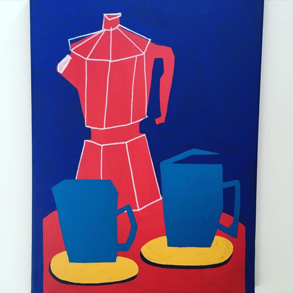 Kleine stillevens of stadszichten in felle kleuren: in alle eenvoud barsten de schilderijen van Isabelle Le Tutour (1997, Antwerpen) van de energie. Opgebouwd uit strakke vlakken lijken haar onderwerpen wel geschilderde collages tegen een monochrome achtergrond. Isabelle heeft een voorliefde voor alledaagse voorwerpen: kommetjes, een koffiepot, kamerplanten, een fles wijn en glazen… Kunstliefhebbers denken spontaan aan Morandi. Al is de sfeer bij Le Tutour van totaal andere aard. Het is een uitbundige viering van het alledaagse leven.